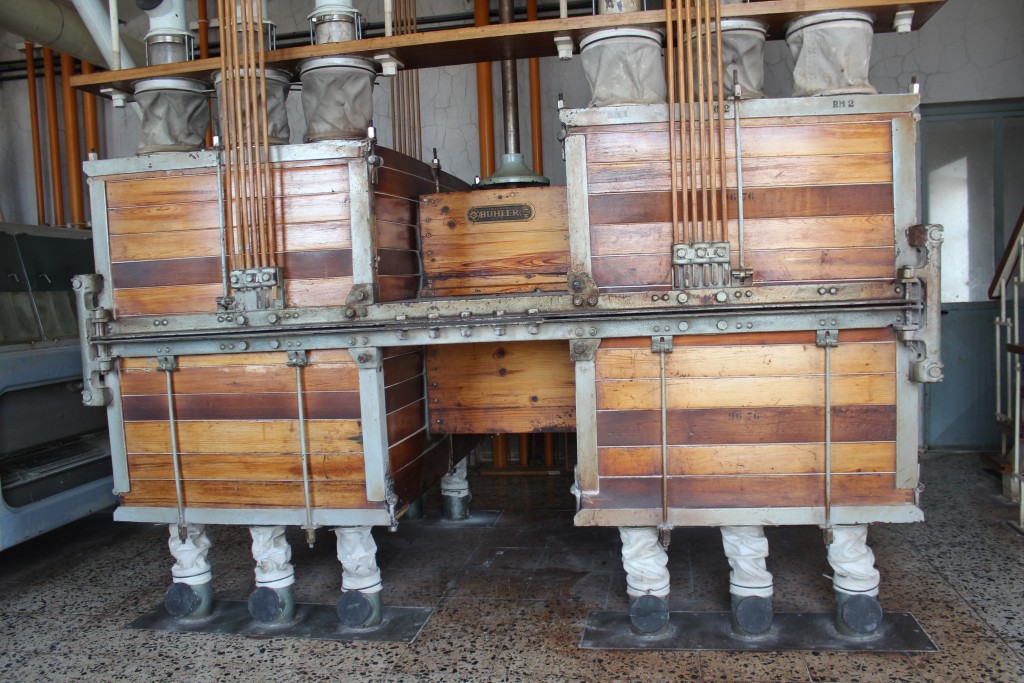 Instalación neumática BUHLER de los años 70 que con un esmerado mantenimiento y puntuales reformas, nos permite la molturación de diferentes cereales para nuestras harinas especiales.